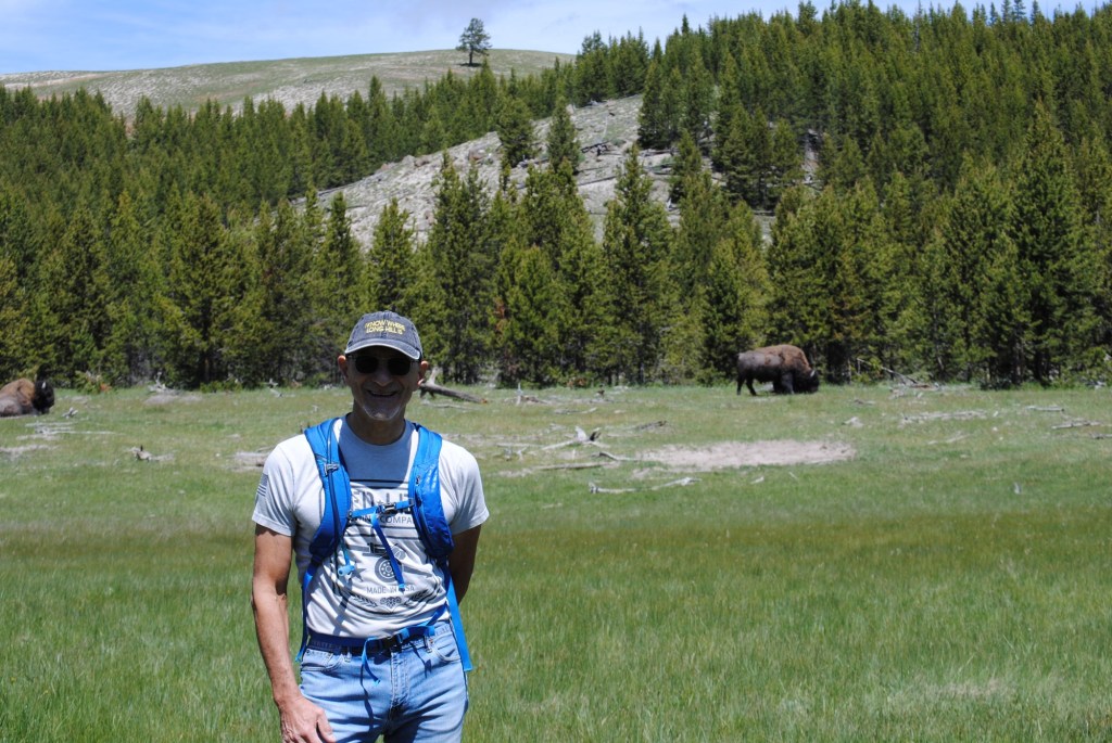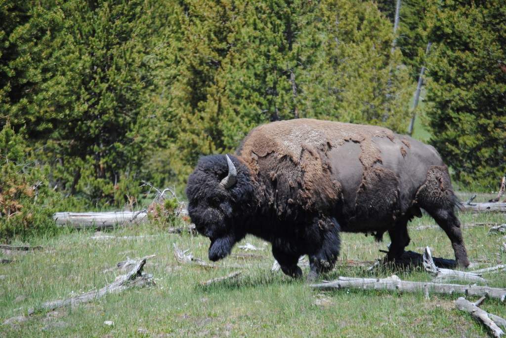 Yesterday, Dad and I stood looking at some bison in a field. They walked closer. They told me they just wanted to eat the grass closer to us and to pass by to the other side of the trail.