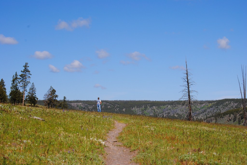 As they approached, faces down munching on the grass, Dad rang the bear bell instinctively and fearfully.